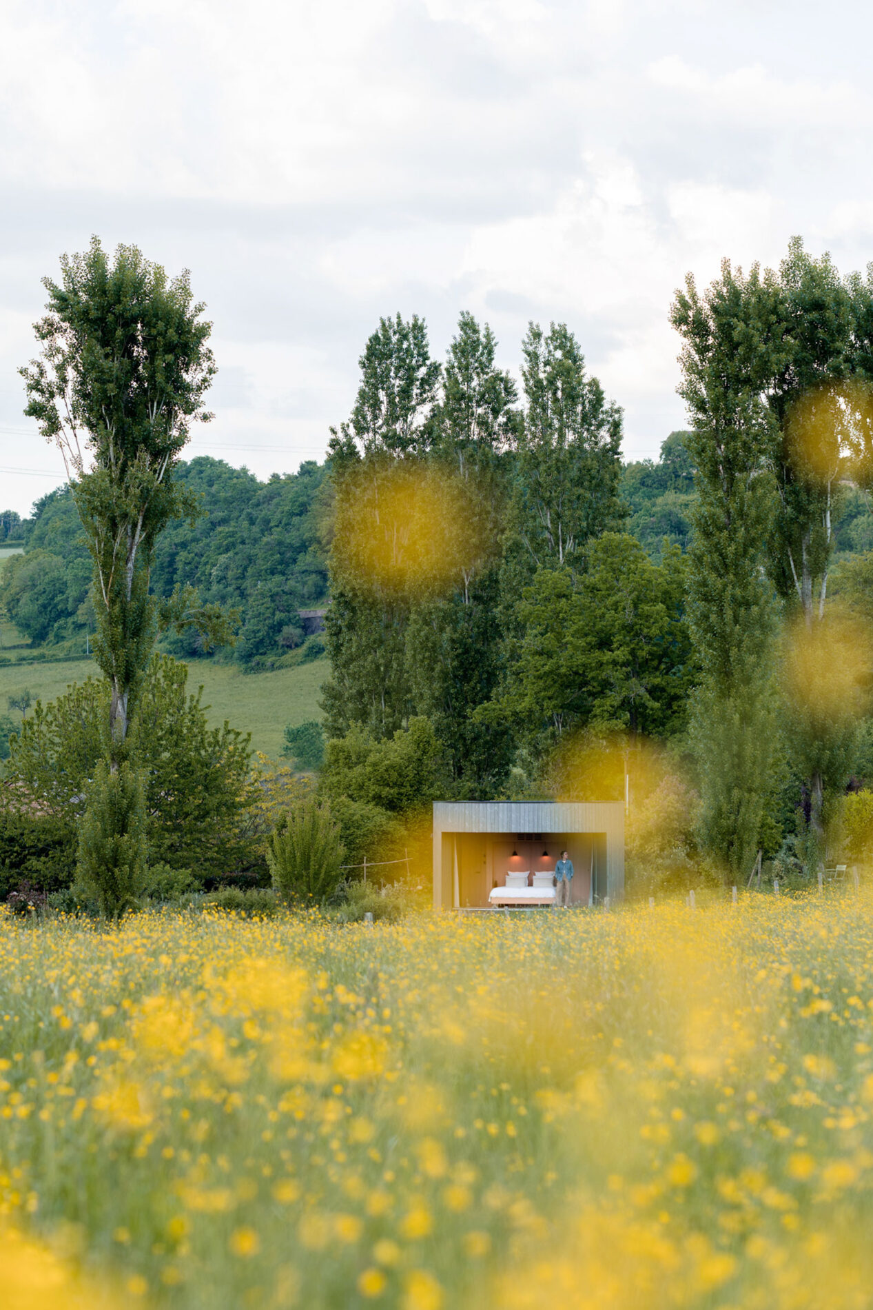 C'est à quelques kilomètres de la belle Cluny, dans le village de Château, au sein du parc de la maison d'hôtes Tomette Singulière, qu'un Lumipod 5 et un Lumipod Sauna ont été installés face aux prairies bocagères typiques de la région. Un havre de paix pour les occupants, et l'opportunité unique de se reconnecter à la nature.