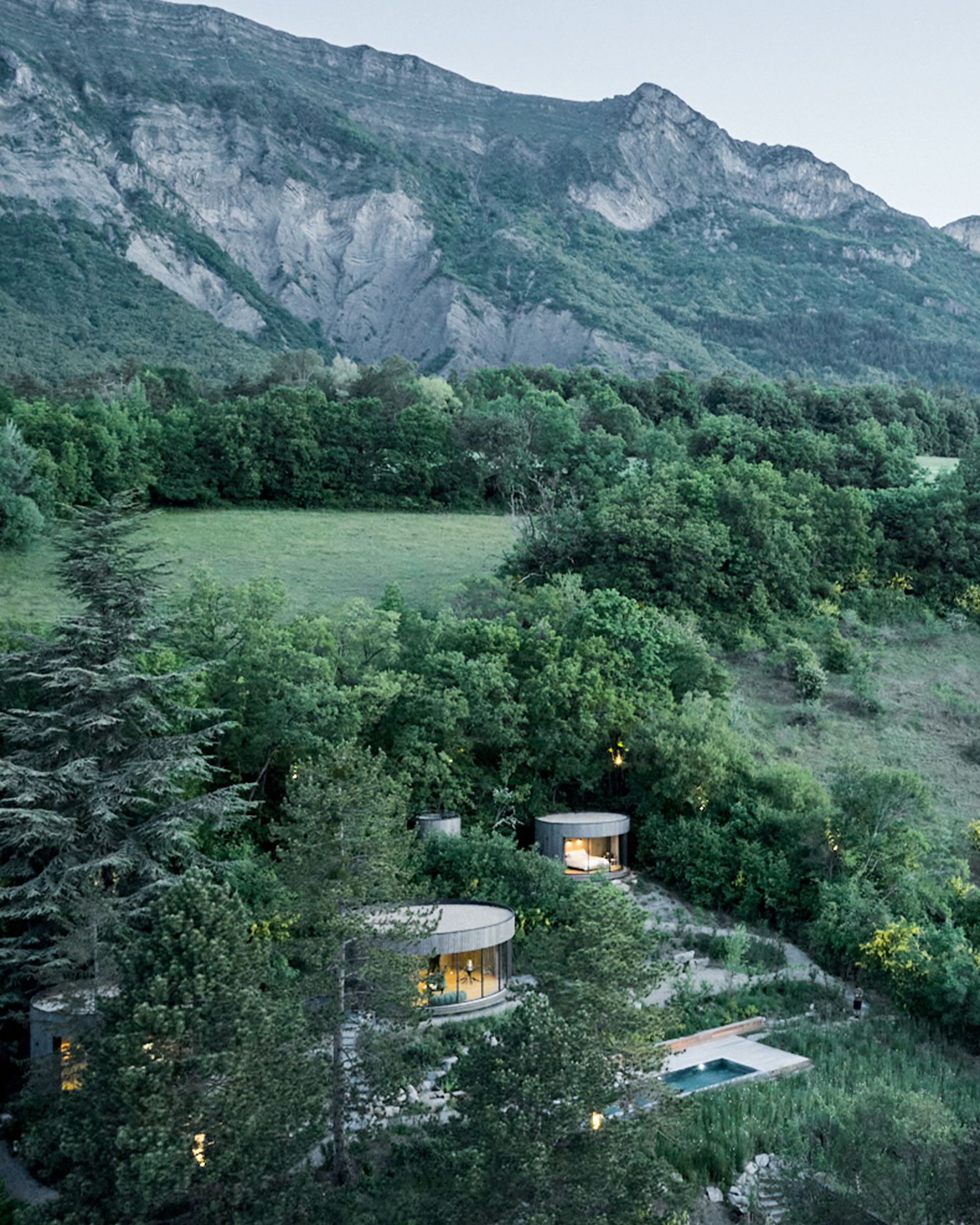 Dans les Hautes-Alpes, ce projet est celui d'une "maison" composée de plusieurs Lumipod indépendants les uns des autres, et pourtant très bien connectés grâce au rôle essentiel de l'aménagement paysager.