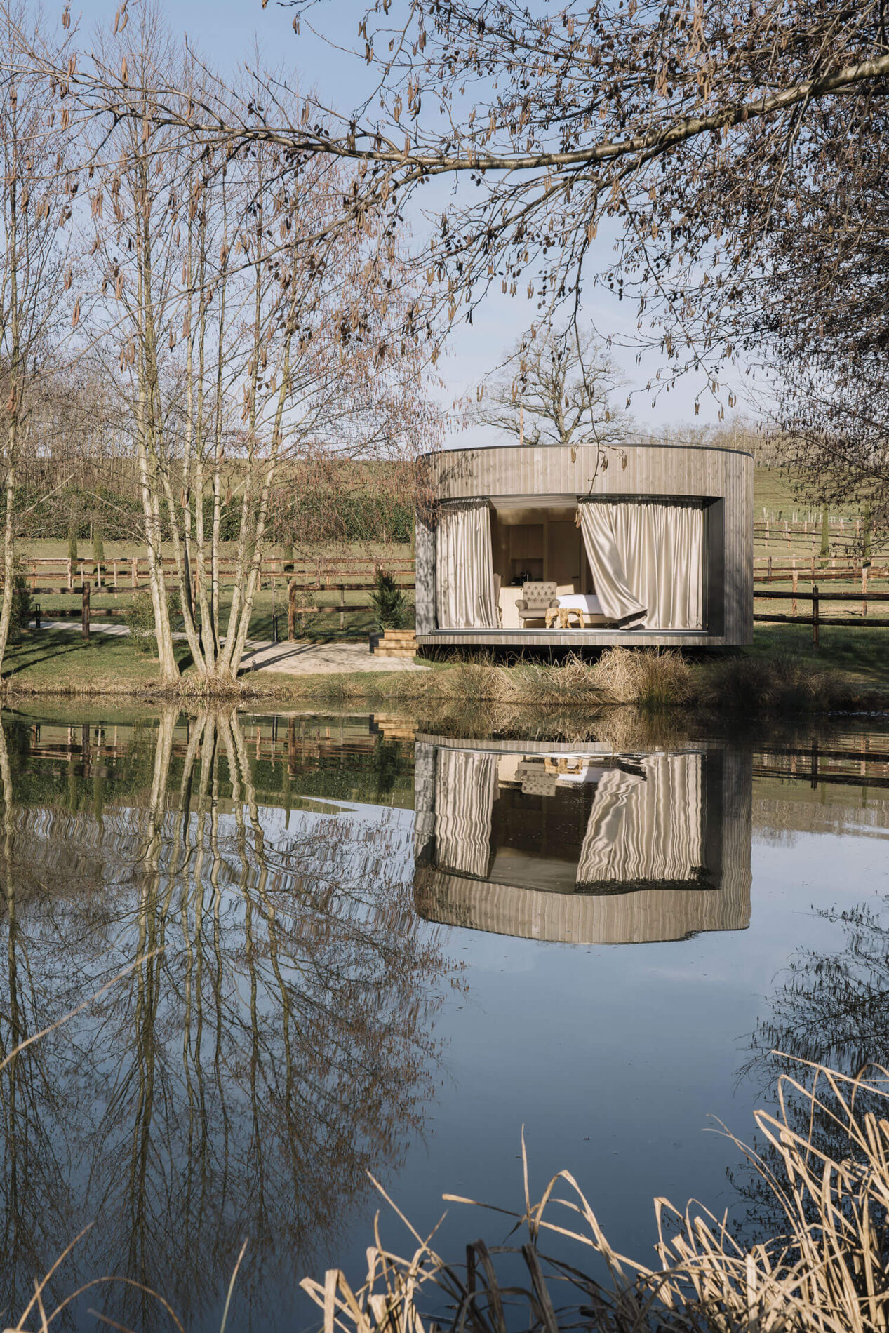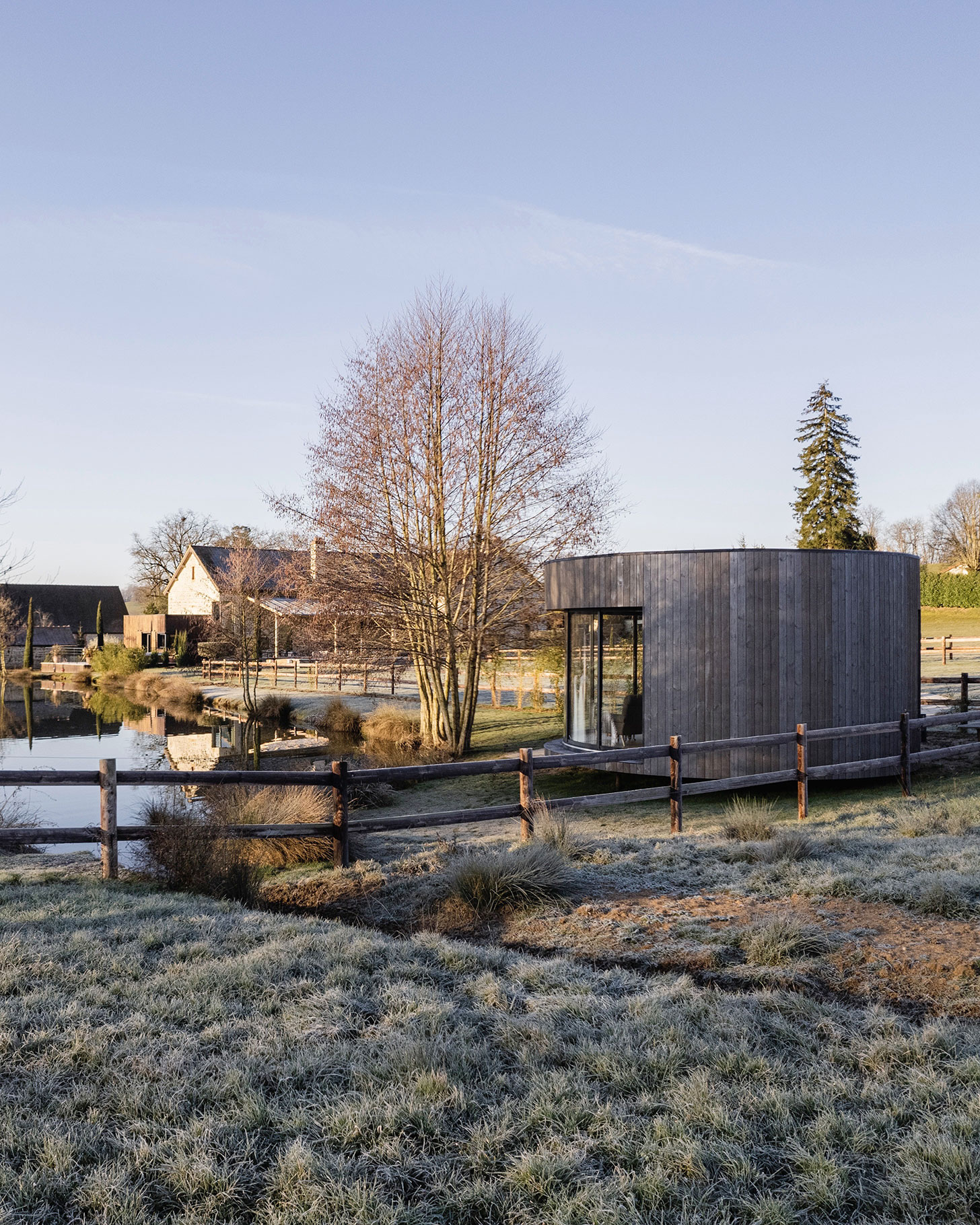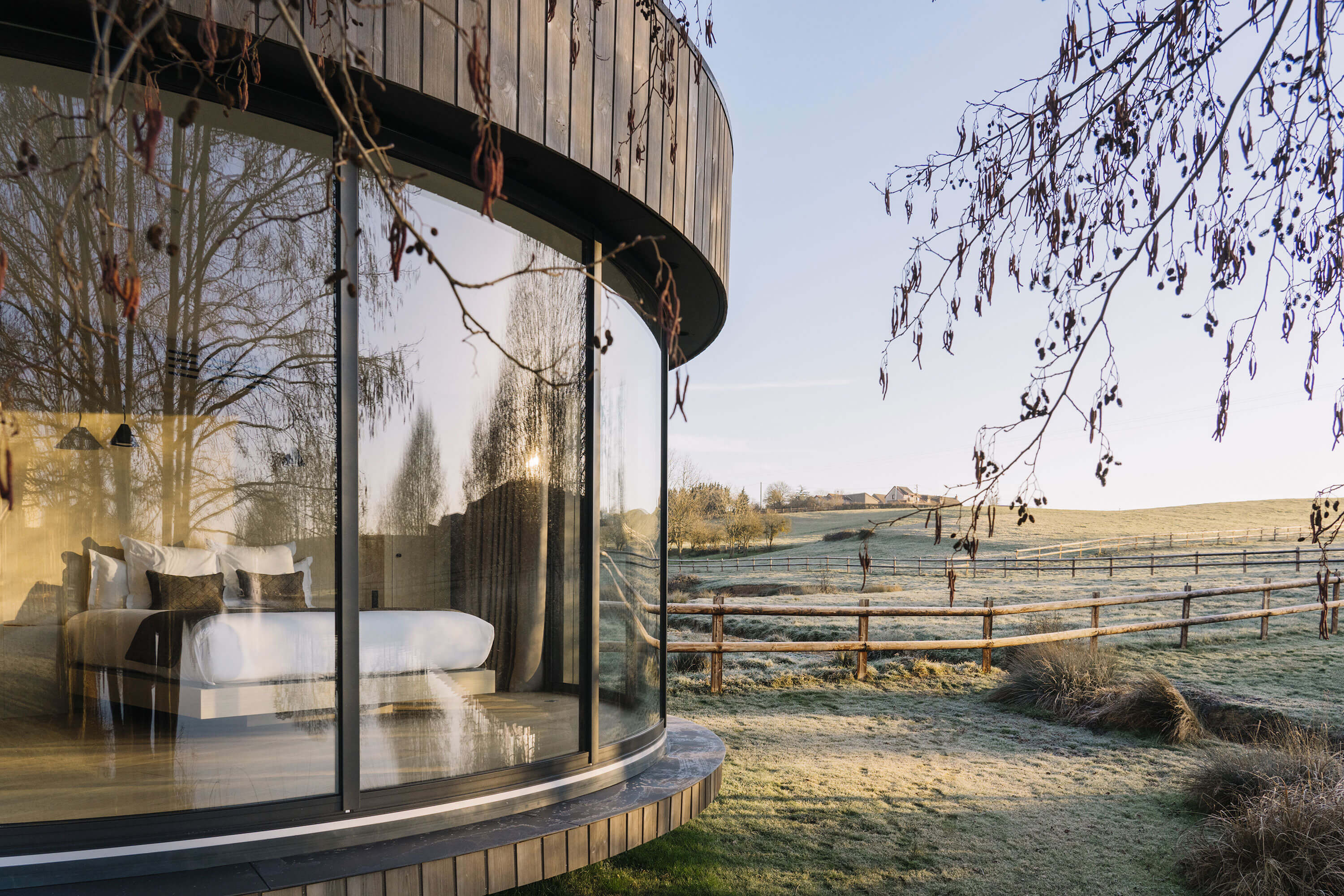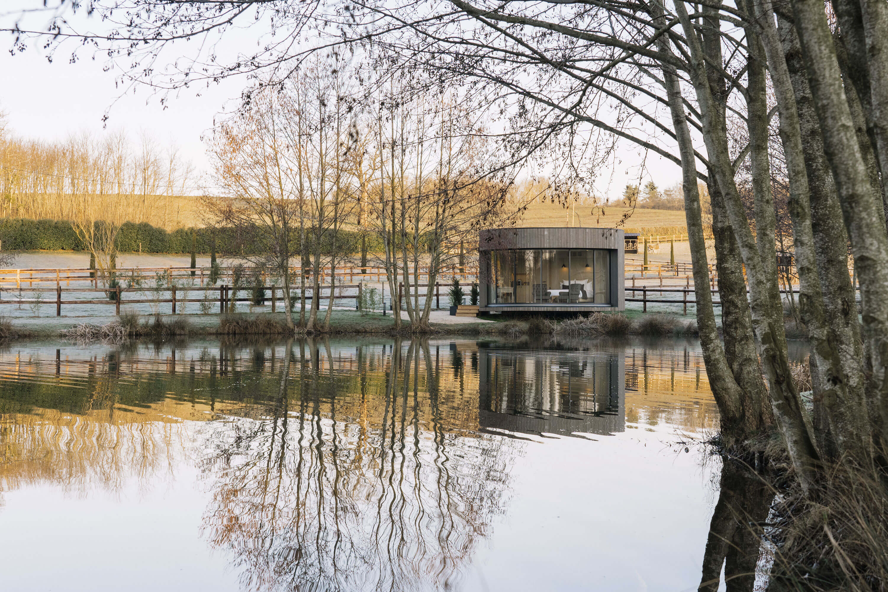 LumiPod 6 installé en bordure d’étang dans le magnifique Domaine de Rymska, hôtel 5 étoiles Relais & Château au cœur de la Bourgogne, à 30km de Beaune.