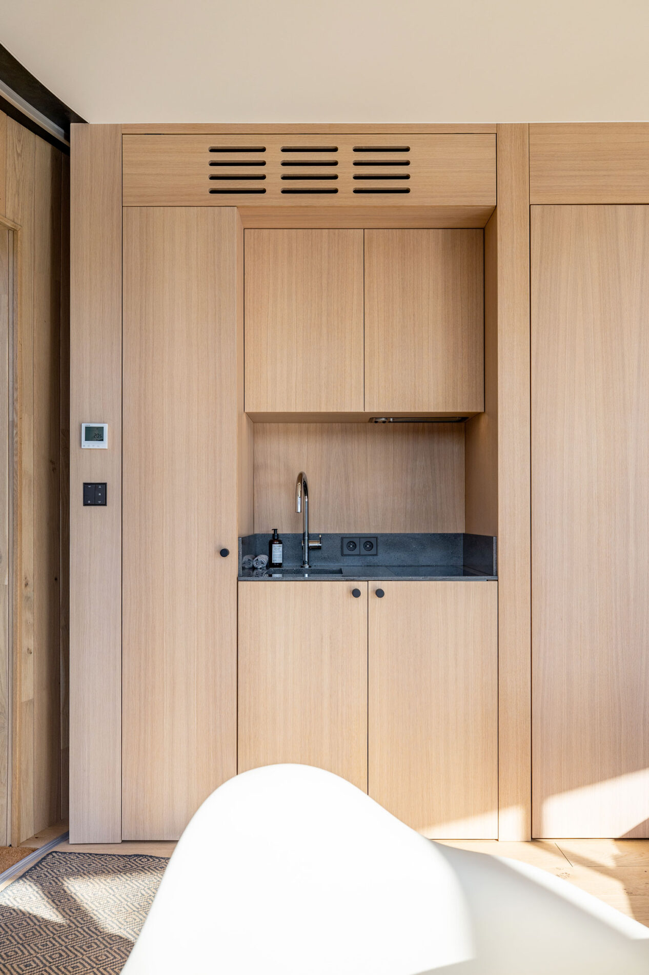 Ce Lumipod n’est pas un simple hébergement, c’est un refuge unique qui conjuge design minimaliste et nature sauvage. Un cocon de sérénité, idéal pour ralentir, savourer le silence de la forêt et les lumières changeantes du ciel sur le lac. Équipé d’une kitchenette, les occupants peuvent ainsi profiter en toute autonomie de leur échappée au cÅ“ur de la nature.