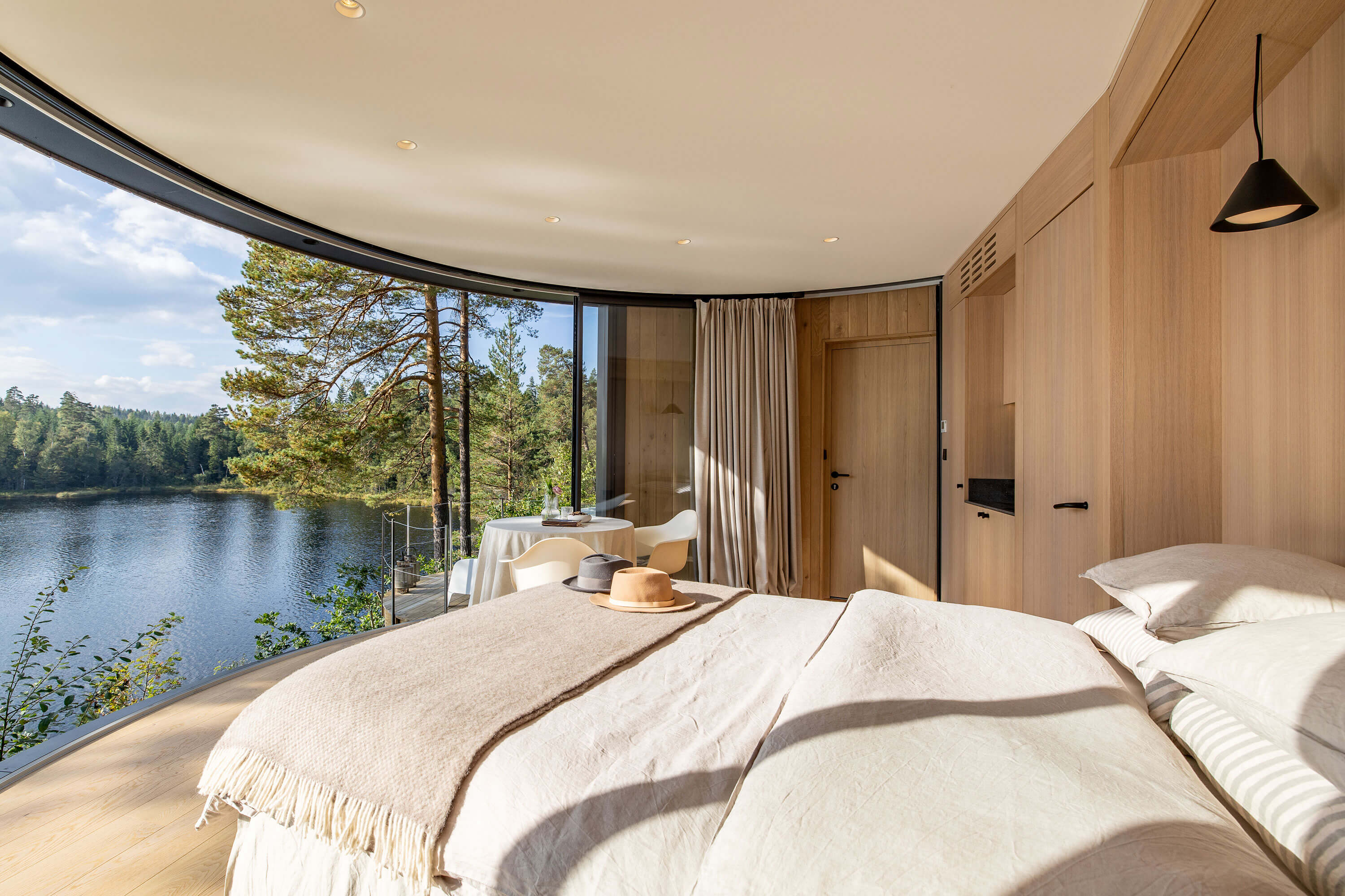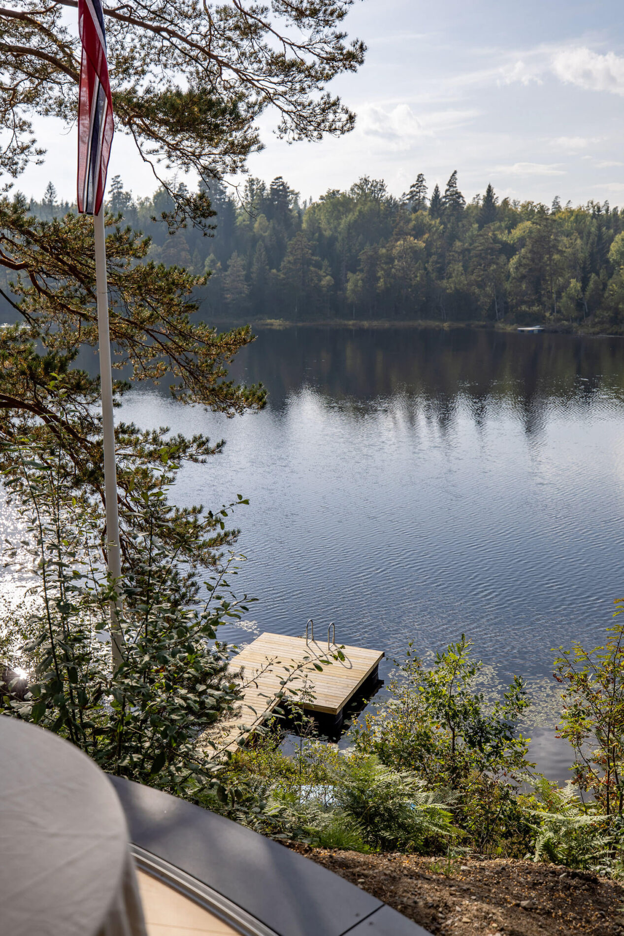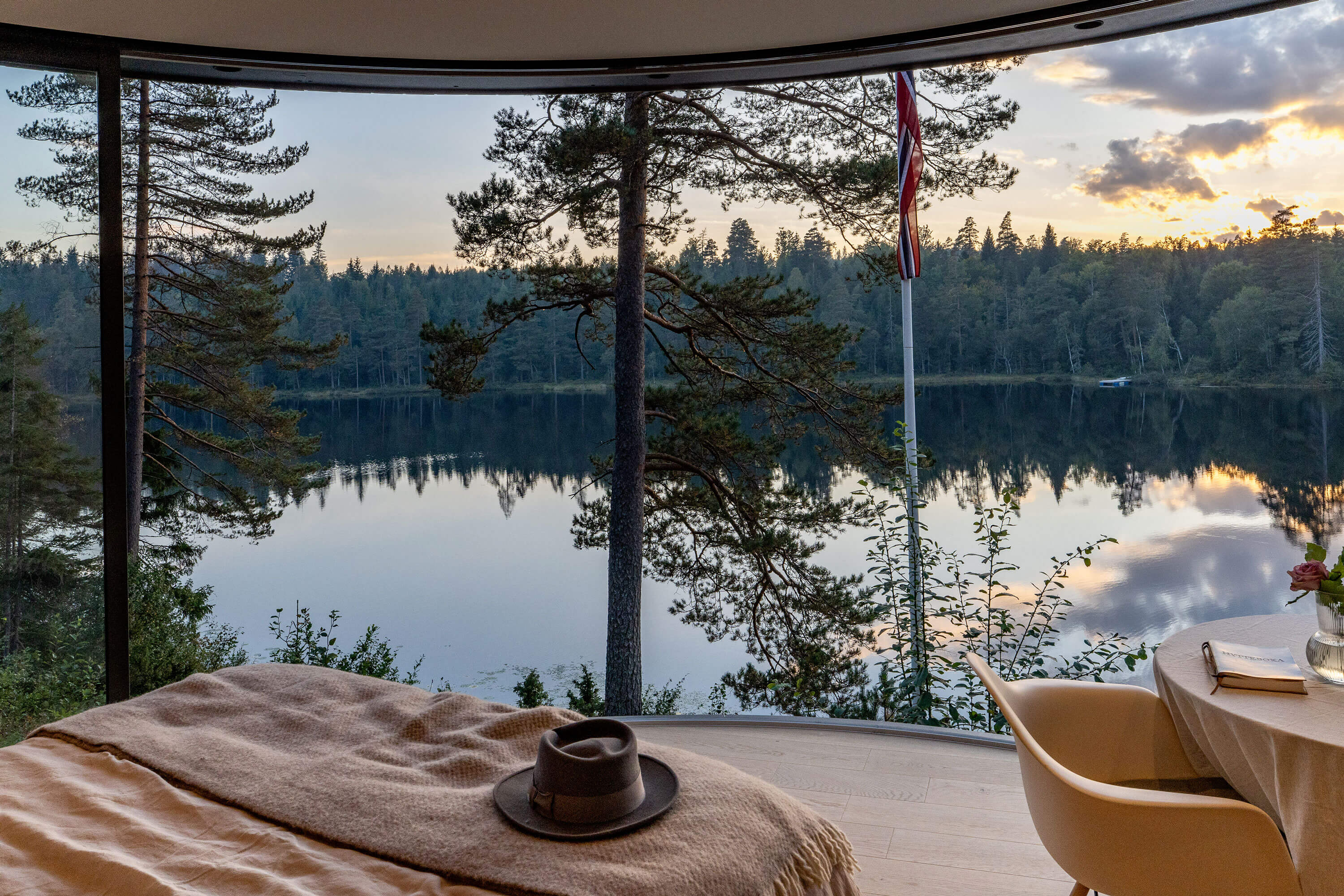 Cadre incroyable pour ce Lumipod 6 installé à moins de deux heures au sud d’Oslo, complètement immergé dans la forêt avec son ponton privé et un panorama à couper le souffle sur le lac Kringlevann.